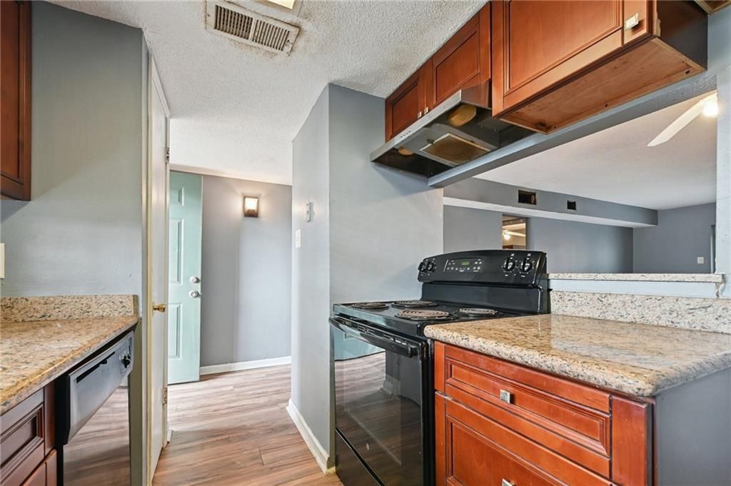 Convenient first-floor walk-up condo featuring 1 bedroom and 1 full bathroom. This well-maintained unit offers granite countertops, custom cabinetry, and a comfortable, functional living space. Enjoy a private fenced patio, perfect for morning coffee or relaxing outdoors. Assigned parking is located directly in front of the unit for easy access. The condo fee includes all utilities, making for simple, low-maintenance living. Ideally situated with quick access to downtown, shopping, dining, and local conveniences.