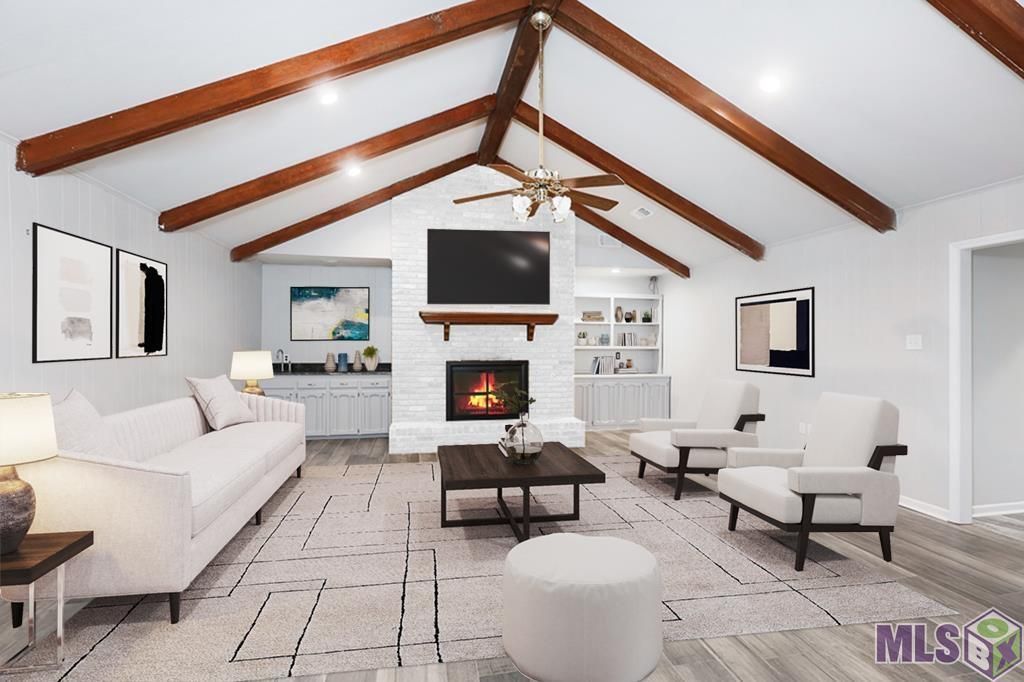 CHECK OUT THE UPDATED BATHS!!! BEAUTIFUL HOME ON LARGE LOT IN COMITE HILLS SUBDIVISION. VIRTUAL STAGING gives you a great idea on what this vacant home can look like with your beautiful things. Lovely wooded area in rear means no neighbors and beautiful quiet spaces to wonder through. New roof (only 6 months old!), appliances are all 5-6 years old, new interior paint, really well done! Large gathering area with catherdral ceilings and exposed beams, wet bar, built in shelving and brick fireplace. This is the perfect space for entertaining family and friends. The updated kitchen features solid stone counters, cathedral ceilings, tons of cabinets, double ovens, gas stove and a substantial amount of counter-space. Large yard and plenty of parking.